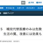 2019年2月13日 / 最終更新日時 : 2019年2月13日 satoru781108 がん治療 <毎日新聞・取材協力記事>補完代替療法に頼る危険性 2019年2月6日の毎日新聞朝刊に、 「がん大国白書 その日に備えて」という連載記事の一つである 「補完代替医療のみは危険 科学的証明なし、食事療法など 生活の質、改善には効果も」 が掲載されました。 がん患者さんが食 […]
