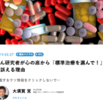 2019年3月7日 / 最終更新日時 : 2019年3月7日 satoru781108 がん治療 <講談社サイト記事>がん研究者が心の底から「標準治療を選んで!」と訴える理由 講談社サイトに寄稿した記事の、もう一つの記事をご紹介します。 ネット/書籍に広がる嘘に騙されて、効果が証明されていない代替療法を選び、病状を悪化させてしまうがん患者が増加してます。 なぜ、代替療法を選ぶのが危険なのか、実 […]